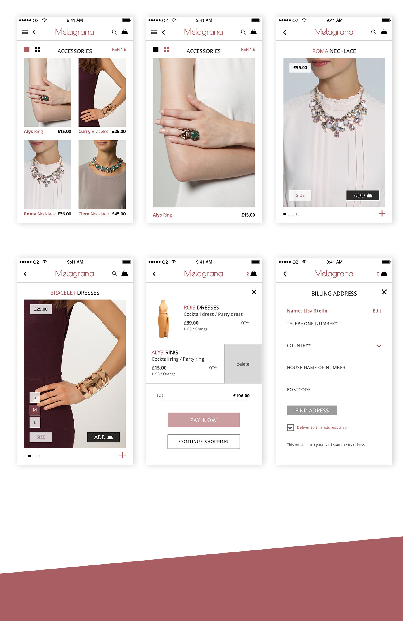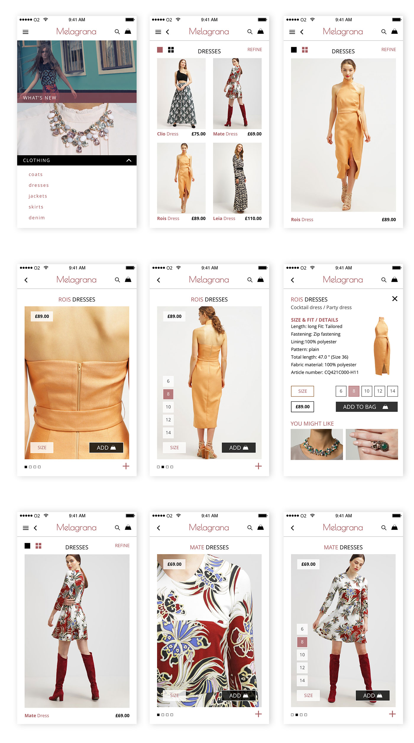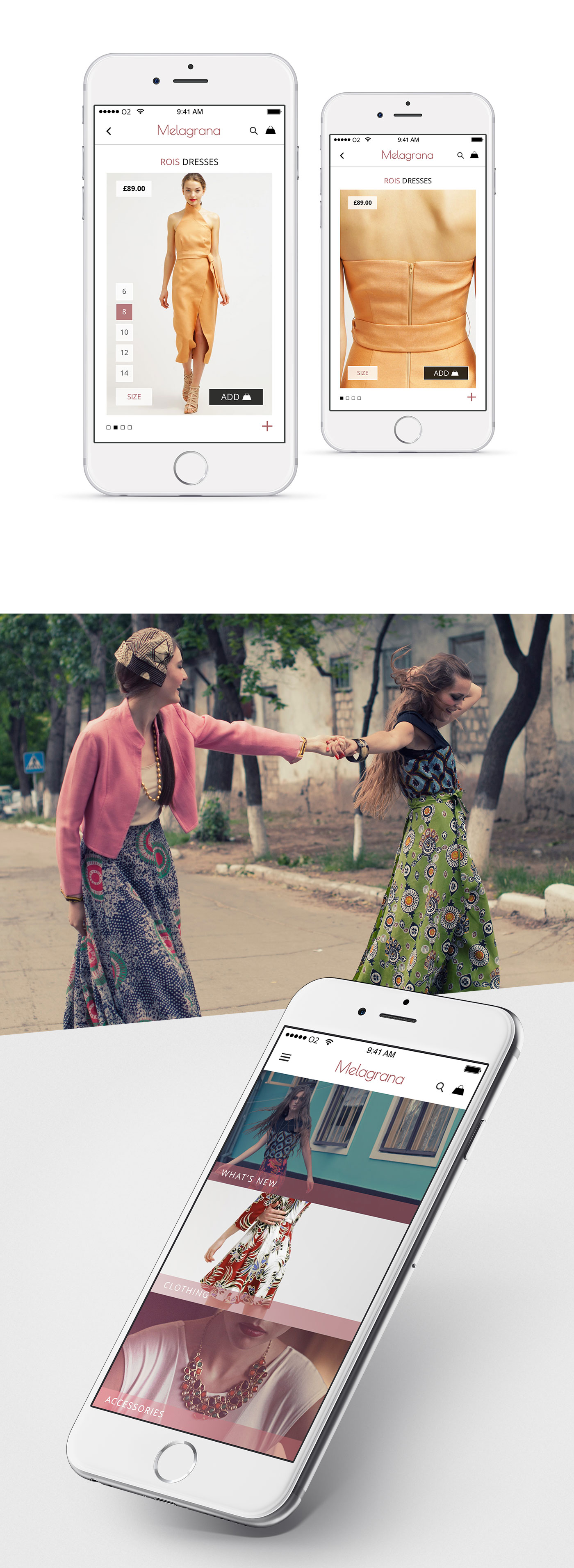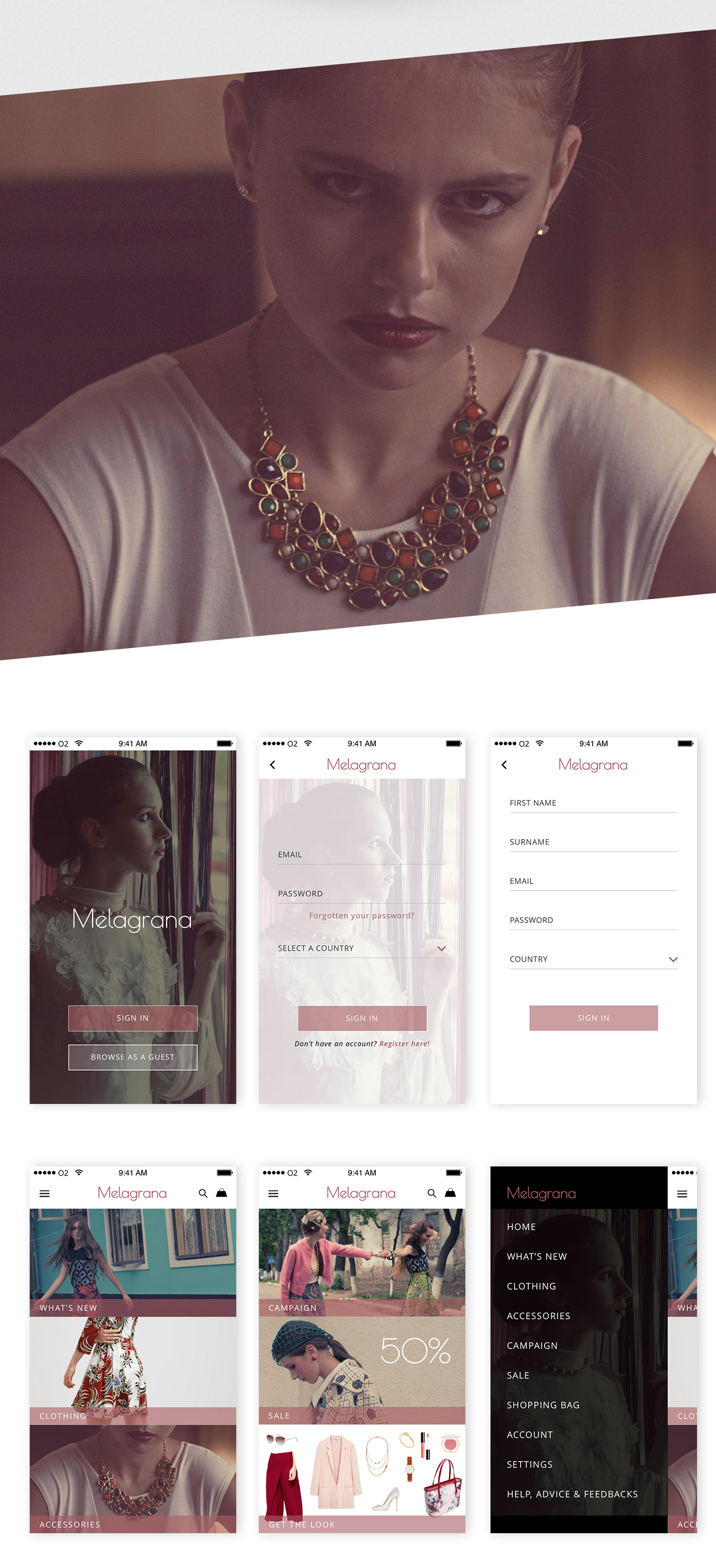 In the Autumn of 2014, I embarked on the ambitious MELAGRANA project, a concept for a mobile shopping app inspired by the captivating fashion editorials shot across Eastern Europe for a brand from Naples. The vision was to create an app that showcased and promoted local Italian fashion products, blending style with technology.